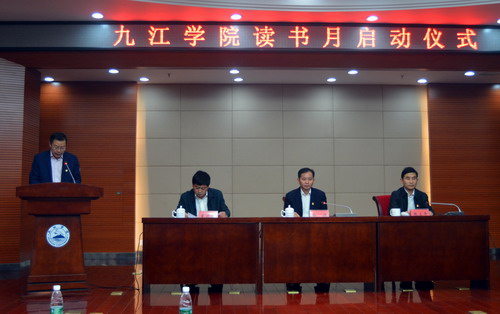 启动仪式上,学生处处长刘平介绍了读书月活动方案,党委宣传部部长冯建介绍了读书月推荐书目,浪井文学社社长刘屹书同学宣读了倡议书。学校官方微博@九江学院和@向学青年同步在线发布读书月推荐书目和相关活动安排。