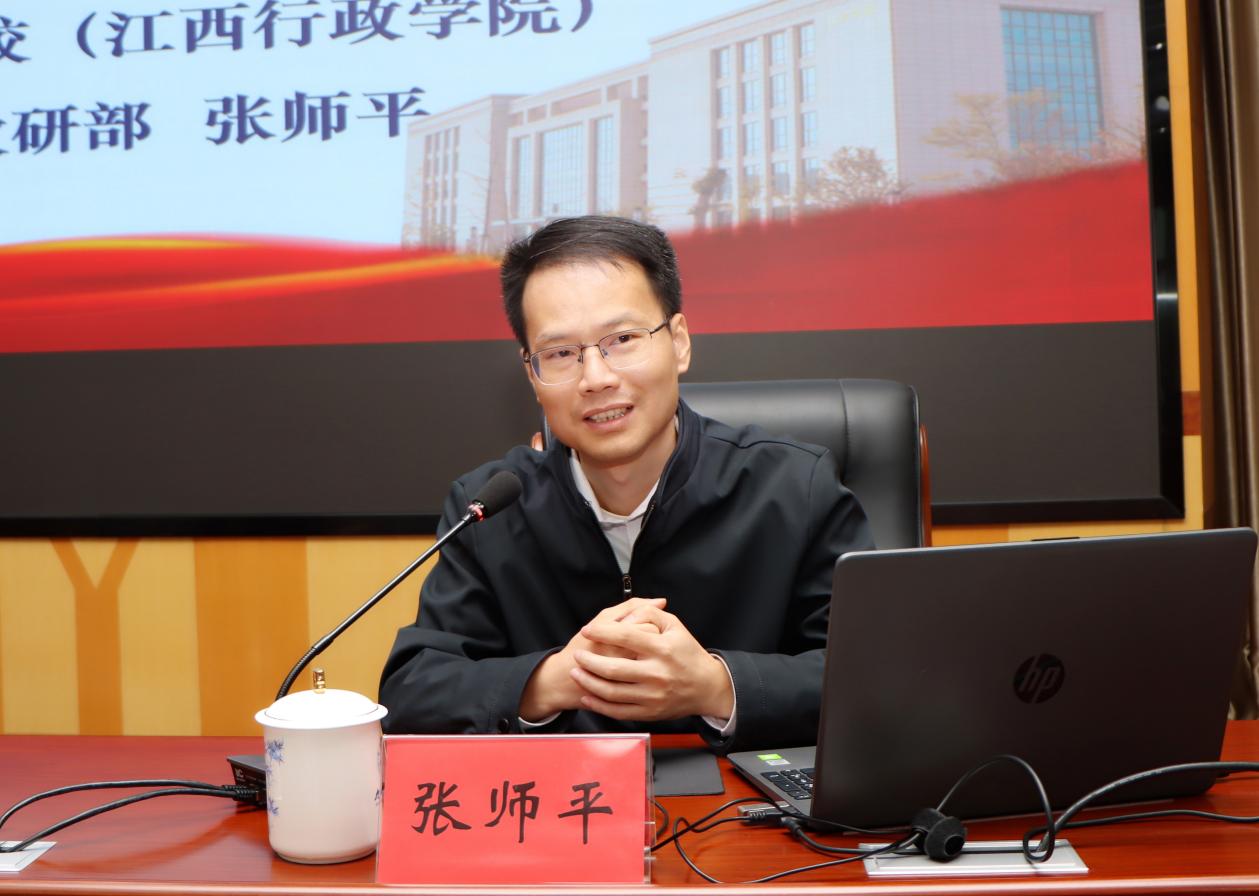 会议邀请省委党校(江西行政学院)党史党建教研部张师平博士作《习近平谈治国理政》第五卷专题辅导讲座。他从《习近平谈治国理政》第五卷出版的时代背景与重大意义、总体框架与鲜明特色、核心要义与实践要求三个维度展开深入解读,系统梳理了著作中贯穿的马克思主义立场观点方法。