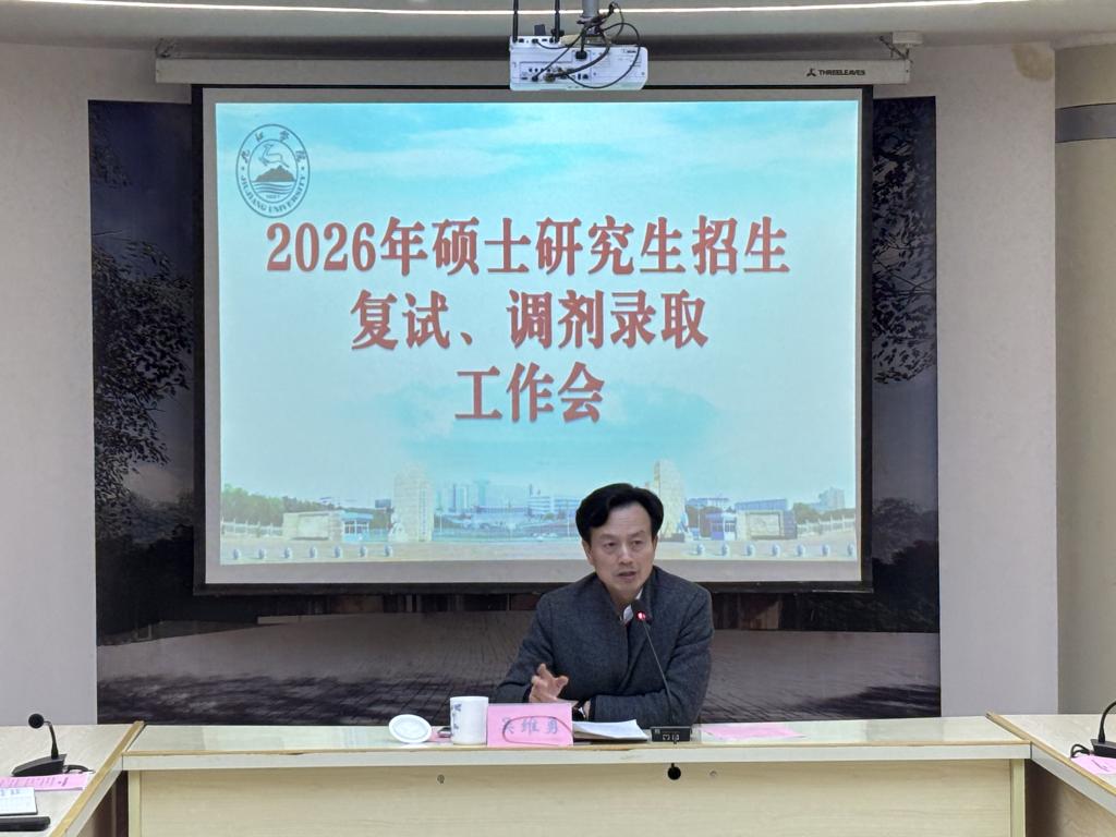 近日,江西省教育厅召开2026年全省硕士研究生招生复试、调剂录取工作视频会议。我校在行政楼四号会议室设分会场,校党委委员、副校长吴维勇,校纪委、发展规划与研究生处及各招生培养单位相关负责人、工作人员参会。